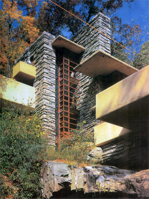 Райт нь 30-аад оны европын байшин, америк маягийн dream houses-мөрөөдлийн сууцаас өөр, цоо шинэ маягийн байшингийн хэв маягийн чиглэлийг гаргаж ирсэн юм. Райт энд Кауфмантай хамт анх ирэхдээ, байгалийн тогтцын сайхныг бахдан, "Хадан тогтоцтой уулнаас буух хүрхрээ болон түүнийг чимсэн ой мод зэргийг харангуутаа л энэхүү байгальд шингэсэн